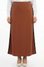 Yan kısımlarda bulunan modern şerit detayı eteğe sportif-şık bir hava kazandırır. 95 cm ürün boyu ile bileğe kadar uzanan ideal bir uzunluğa sahiptir. Bel kısmı rahat kalıp yapısıyla konfor sağlarken, kalem etek görünümü şıklığınızı tamamlar.