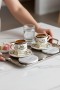 Altın yaldızlı kulp, ayak ve kenar detayları, bu klasik fincan setine asil bir dokunuş kazandırır.