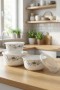 Novvo 3’lü Porselen Saklama Kabı – Yeşil Desenli | Farklı Boy Seçenekleri