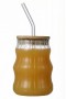 Carino Floransa Bambu Kapaklı Pipetli Cam Bardak